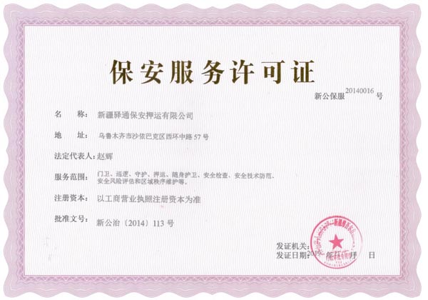 新疆驛通保安押運(yùn)有限公司公司有專業(yè)的保鏢精英團(tuán)隊(duì),對(duì)特種保鏢、貼身保鏢、私人保鏢、高級(jí)保鏢等特衛(wèi)安全工作有豐富的實(shí)戰(zhàn)經(jīng)驗(yàn)人員組成,良...... |